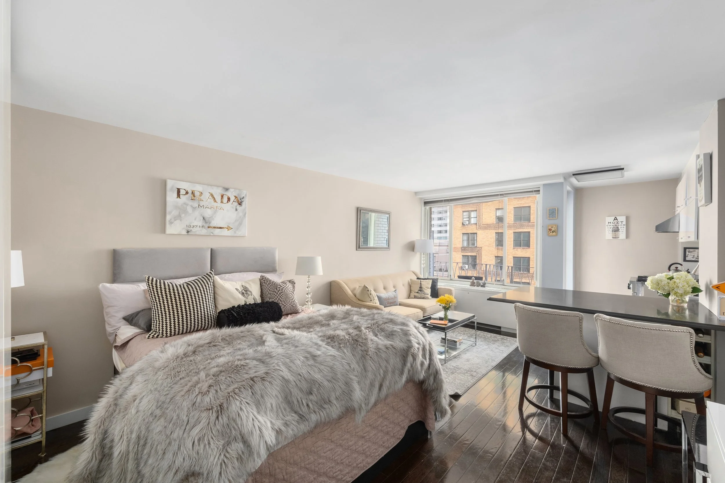 Welcome to Residence 10F at the Frost House. This updated studio apartment features a renovated kitchen and bathroom, hardwood floors, and a private outdoor space.