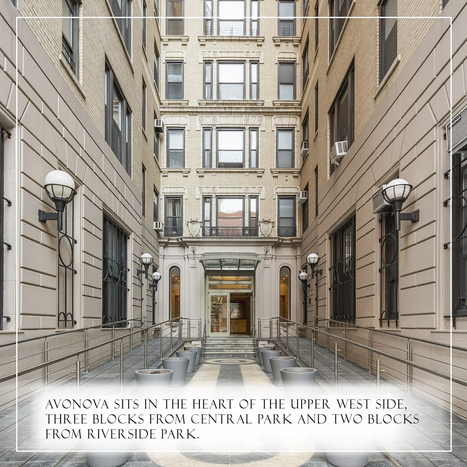 AVONOVA sits in the heart of the Upper West Side, three blocks from Central Park and two blocks from Riverside Park. The AVONOVA amenities include a roof deck, fitness room, bike and laundry rooms, play room, storage, live-in super, and 24 hour doorman. A Bosch Washer/Dryer is located directly inside the unit. Pets are allowed.